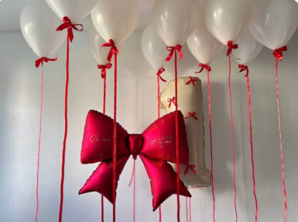 — 10 Шаров под потолок на атласных лентах с бантиками