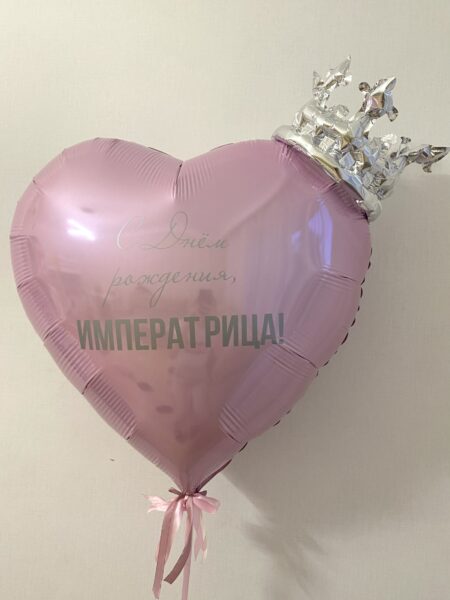 Сердце 70 см на грузике с надписью и декором «Корона»